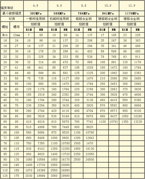 2、建議鎖緊力矩值為:表中數(shù)值×(70-80)%