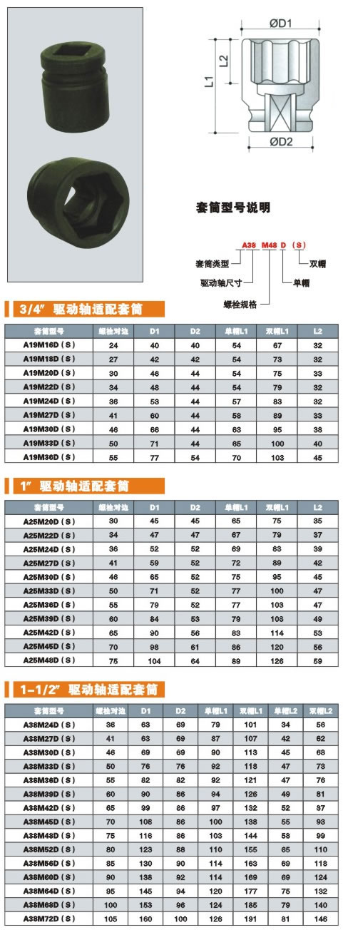 驅(qū)動(dòng)式液壓扳手套筒型號(hào)說(shuō)明